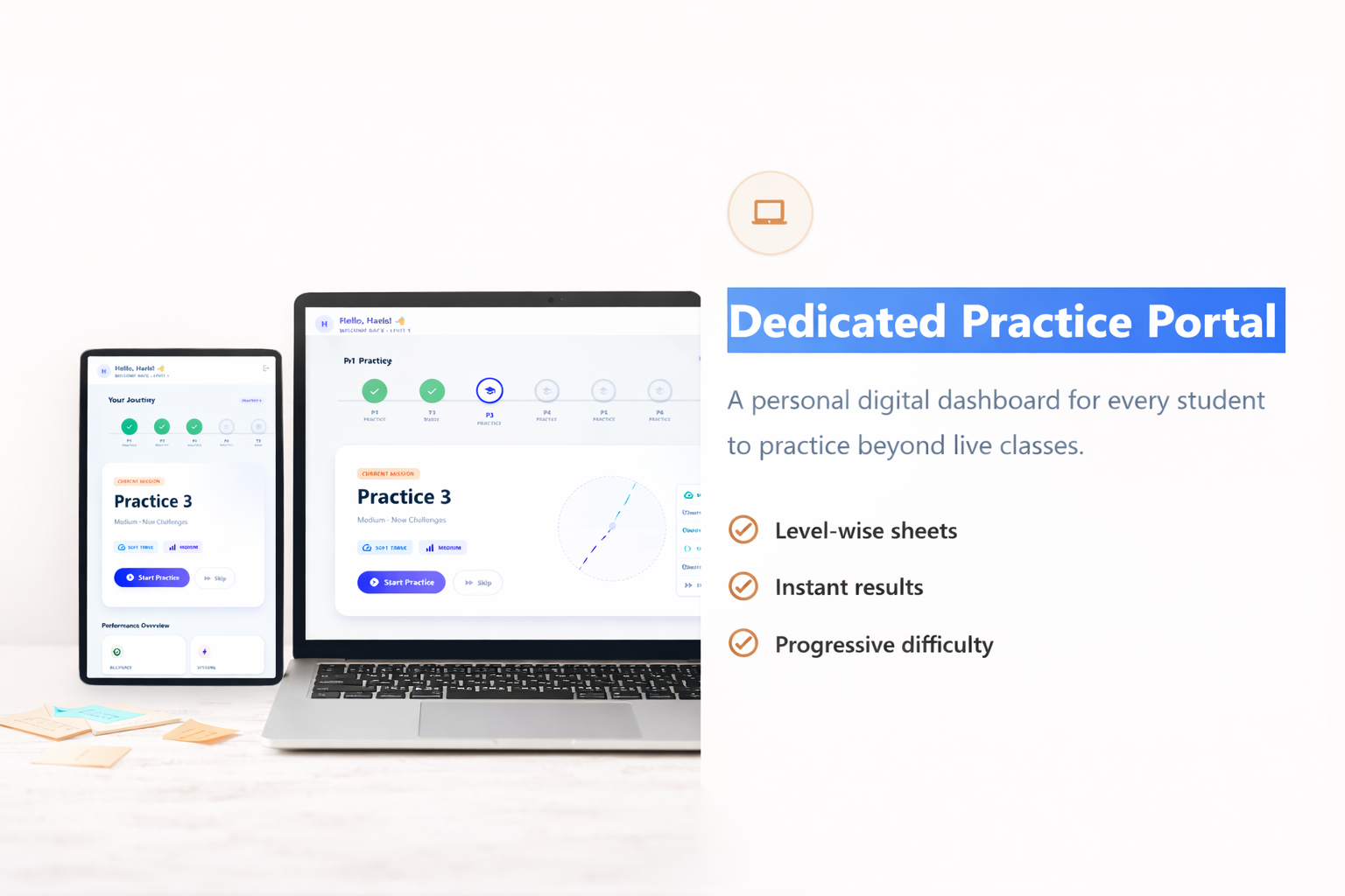A personal digital dashboard for every student to practice beyond live classes.